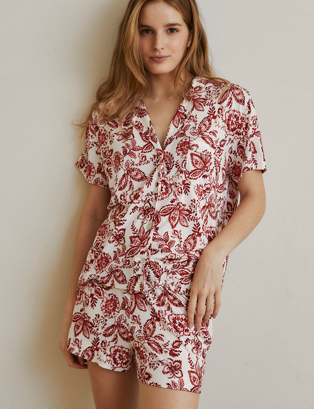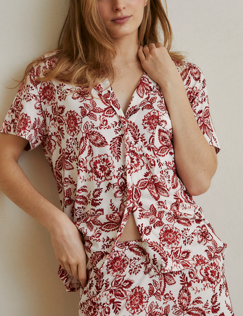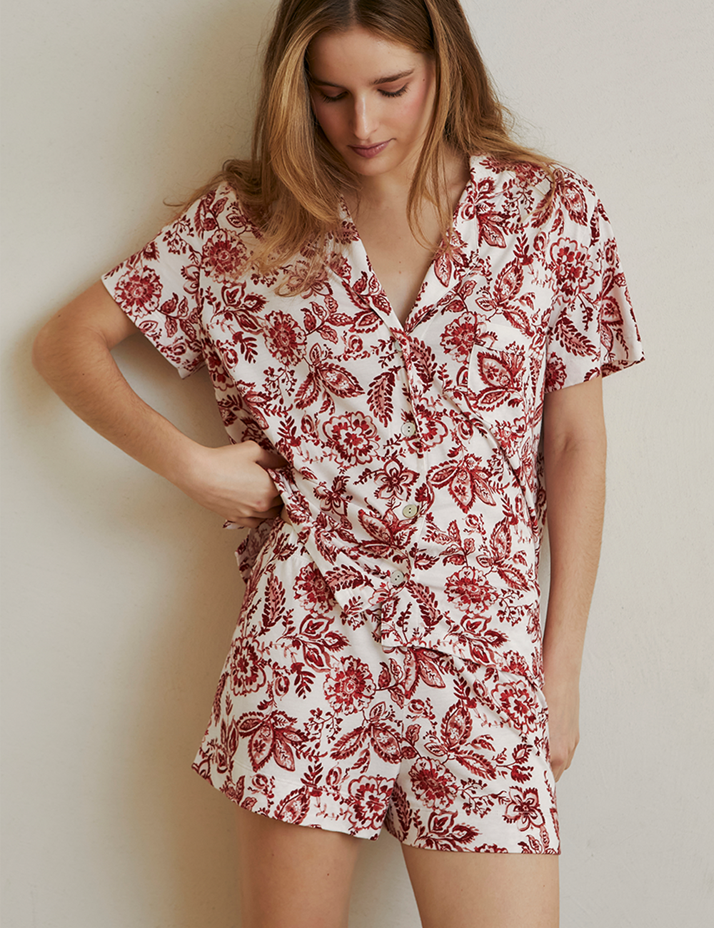 Discover effortless comfort with the Boyfriend Agnes PJ in Red Serenade. This relaxed-fit ensemble features a breezy oversized shirt with flowing sleeves that drapes beautifully, paired with an easy A-line pant for ultimate ease. The tropical-inspired design brings warmth and style to your sleepwear collection. Enhanced with our signature Luxury Finish—a specialized enzymatic wash that softens the fabric and creates a subtle, luxurious drape against your skin for an unmatched wearing experience.