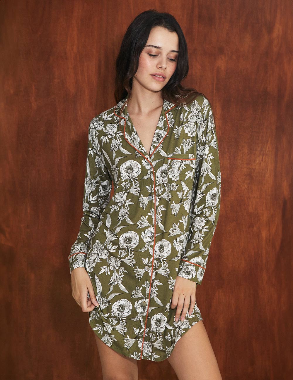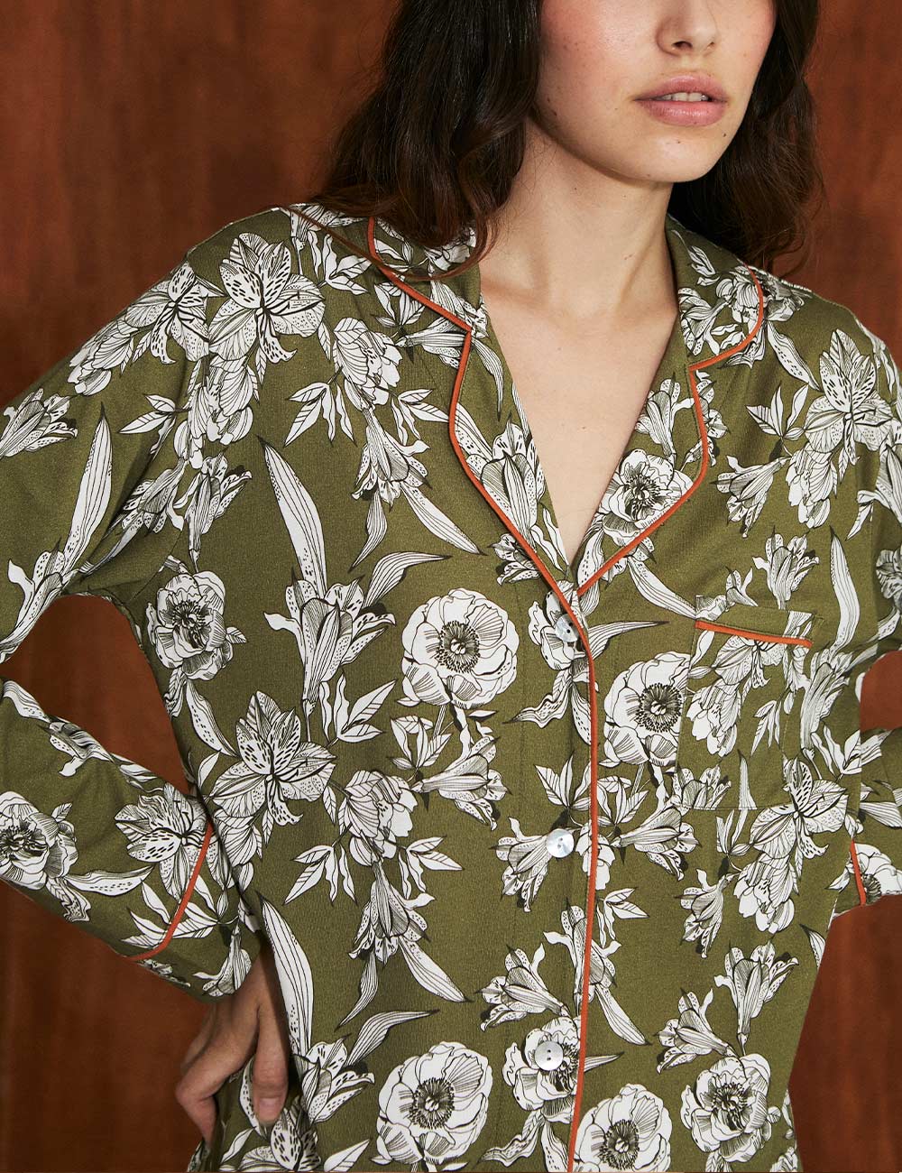 The Boyfriend Cami Olive Garden is a timeless and classic style, perfect for those who prefer to sleep in camisoles. Its loose cut is both comfortable and figure-flattering, with piping and buttons throughout for added style. Enjoy the luxury finish - a special wash on our fabrics for a soft feel and subtle drape that will provide a one-of-a-kind sensation on your skin.