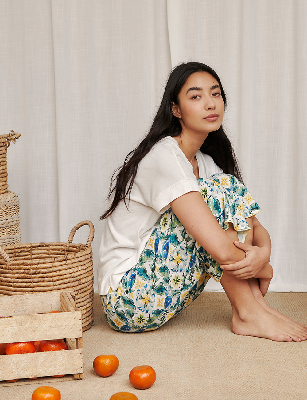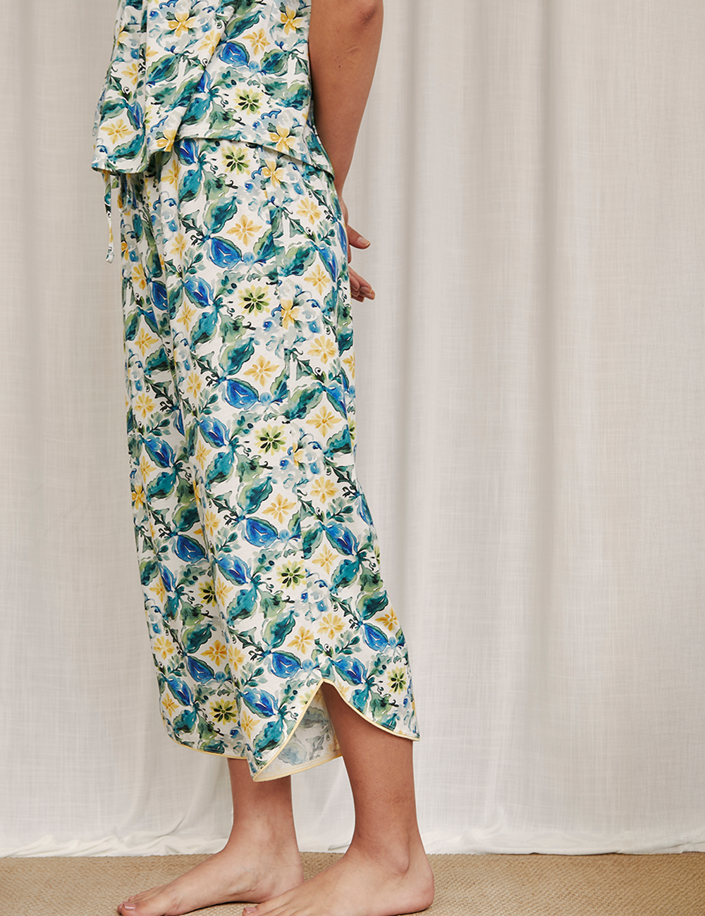 The PJ Pant Positano features a relaxed fit with curved accents along the lower sides. It pairs beautifully with the Dalia or Denia Top. Crafted from Pima Modal Cotton, it offers exceptional softness and a luxurious finish, enhanced by a special fabric wash that improves skin feel and creates a gentle drape for a distinctive comfort.